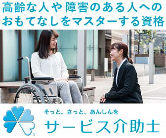 サービス介助士は、高齢の人や障害がある人などに対して「おもてなしの心をもって安全な介助」を提供できることを示す資格です。